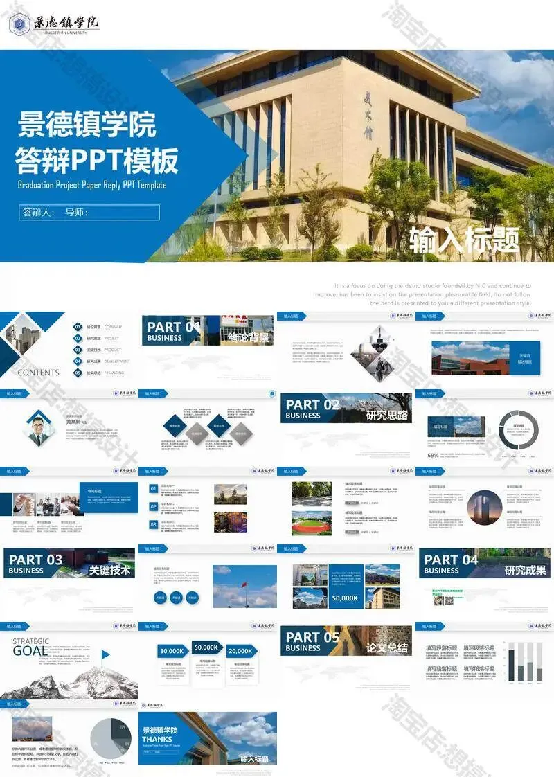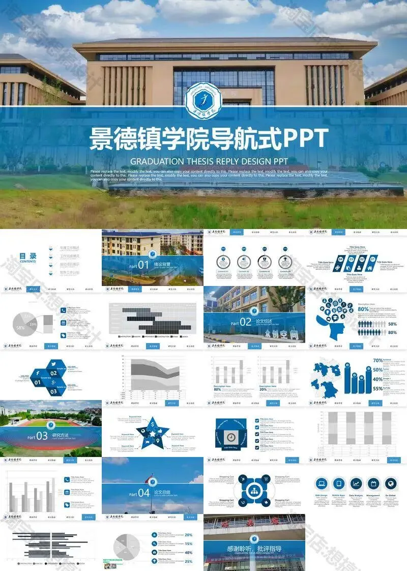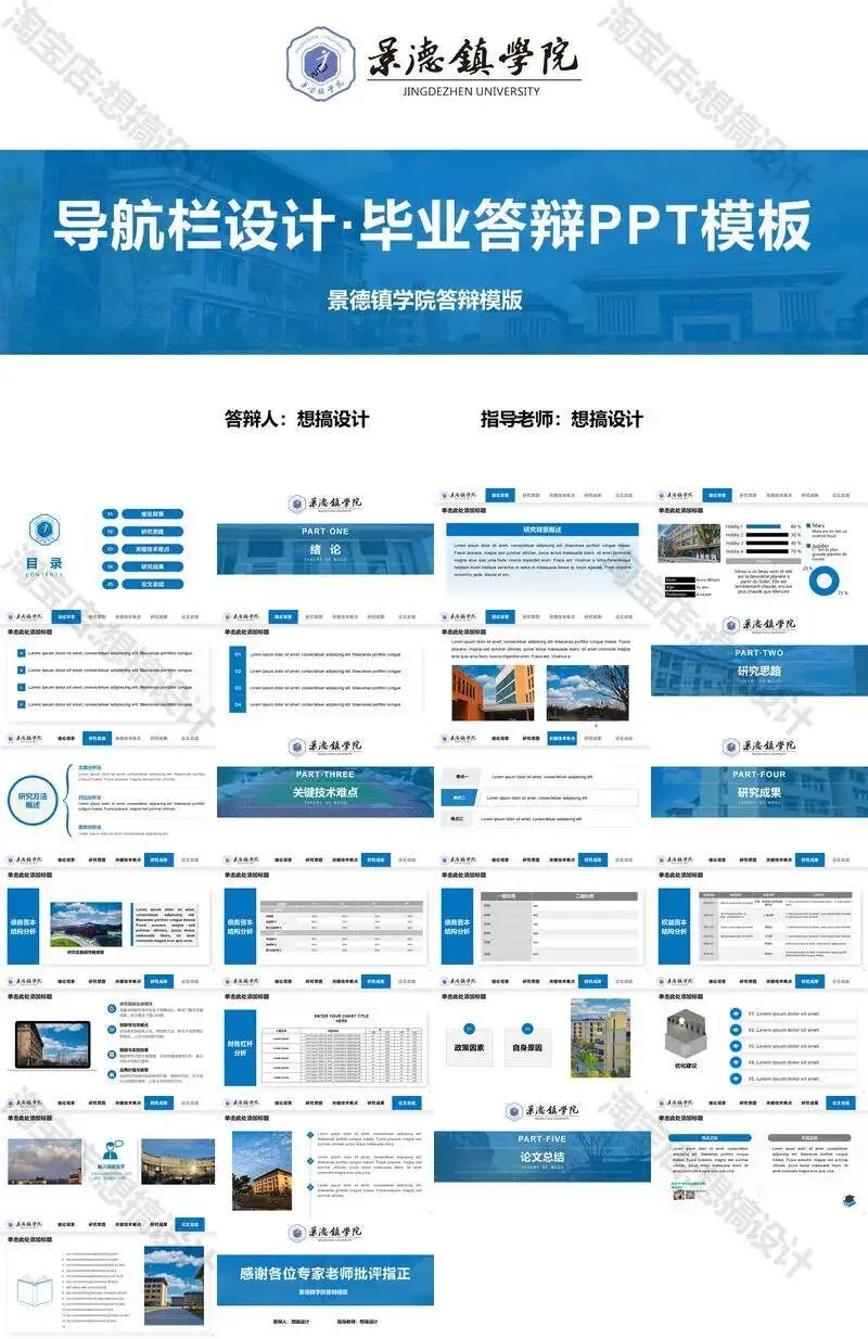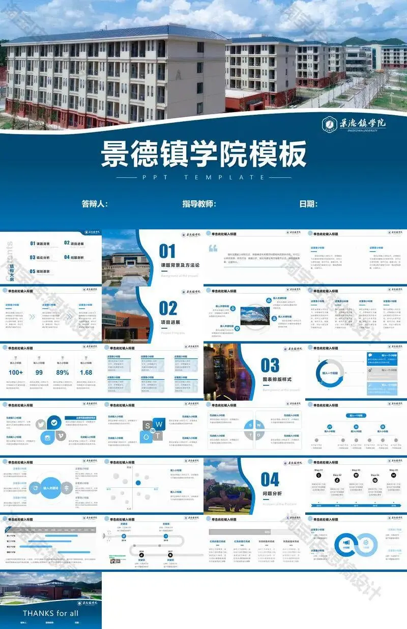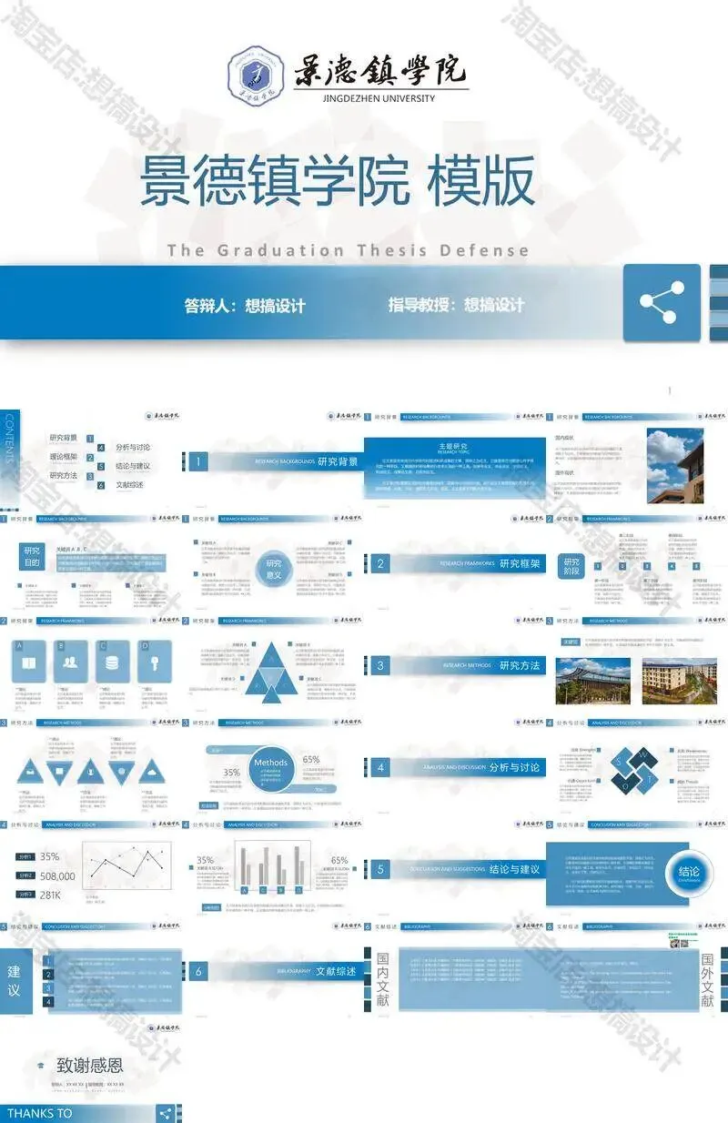 景德镇学院毕业答辩PPT模板汇报幻灯片课件总结大学生作品集
