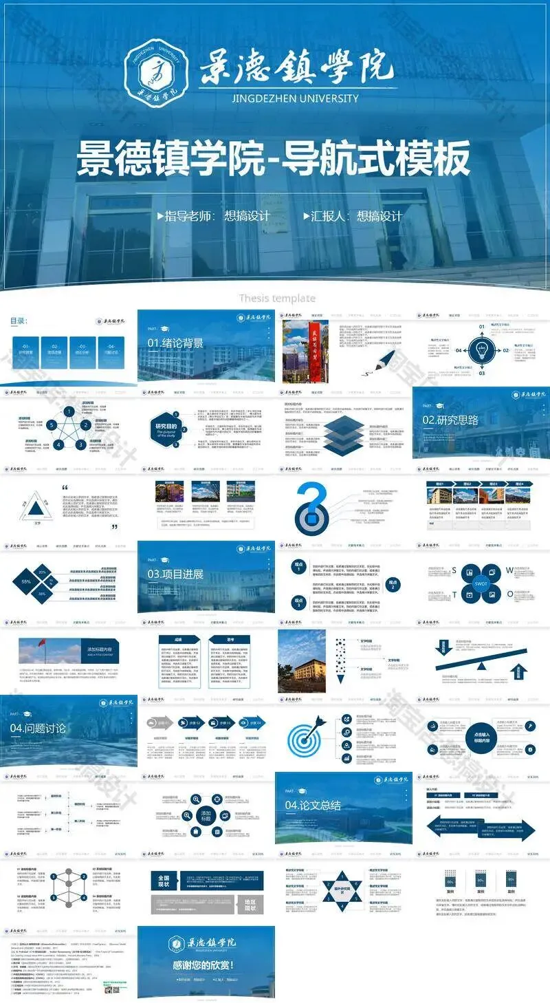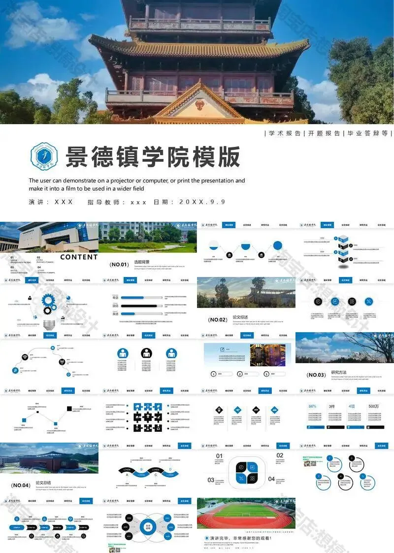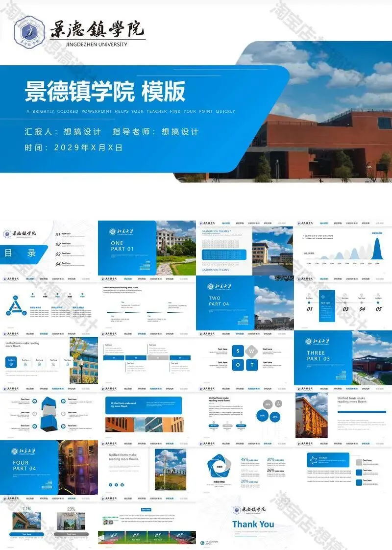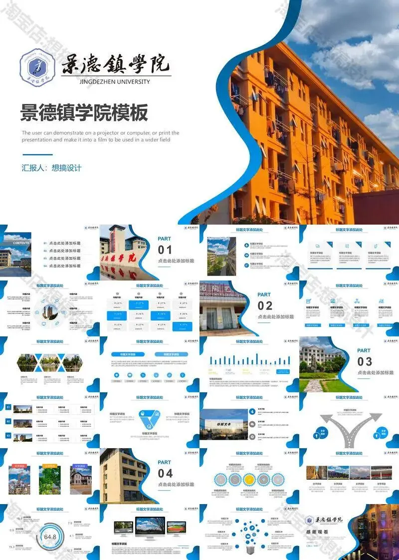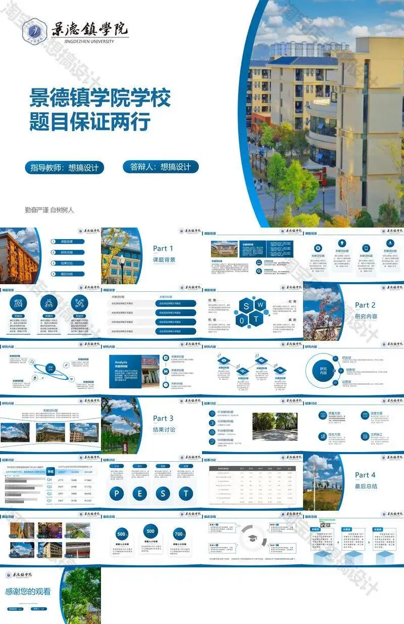 景德镇学院毕业答辩PPT模板汇报幻灯片课件总结大学生作品集