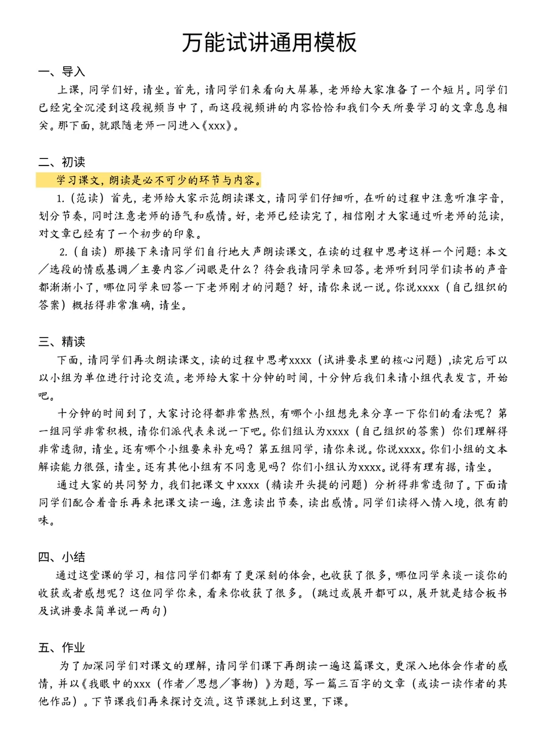 拿来即用:提供完整的试讲逐字稿,从开场、讲解到总结,各个环节都有现成的、高质量的语言可以直接参考。