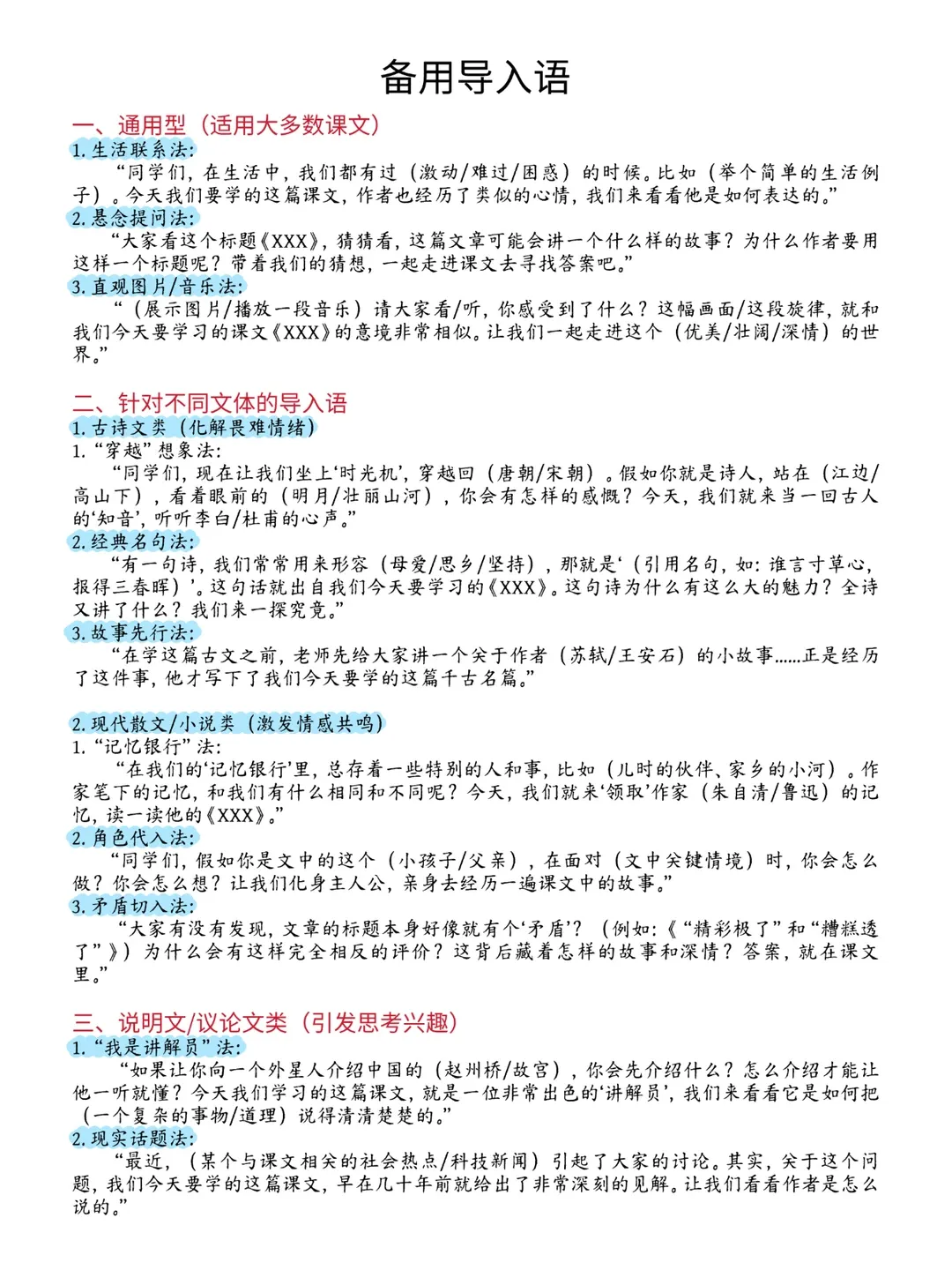 实用有效:来自语心启文师工作室,培训多名学员试讲第一的成绩,来源于状元学员试讲稿培训材料,融合试讲丰富的实战经验,多名语文教招培训辅导老师,进行二次教研,汇集而成!
