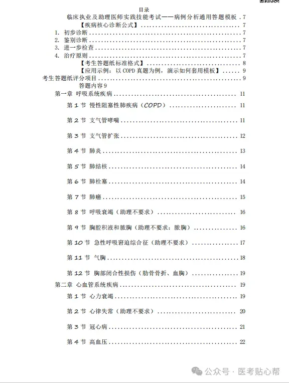 一、初步诊断(总分:约4-6分) | 1. 主要疾病诊断(需明确分期/分型/并发症,如:慢性阻塞性肺疾病 急性加重期)2. 次要/并发症诊断(如:II型呼吸衰竭)※ 注意:多个诊断时分行列出,助理医师不要求的疾病不要写。 |