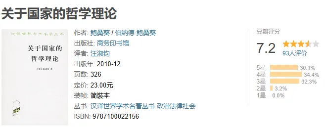 《关于国家的哲学理论》pdf+epub+mobi+azw3电子书下载《关于国家的哲学理论》电子版下载链接,点击文章末尾左下方"阅读原文"自动跳转。代找电子书加微:ajin6666ajin,加微备注领取电子资料可免费领取20T电子资料合集(古籍/电子书/小说/游戏/软件工具/电影/电视剧/动漫/PPT素材/教辅资料/烹饪教程/各类学习文档等电子资源)。特别提醒:电子资料仅供个人学习使用,链接随时失效,请及时保存到个人网盘!