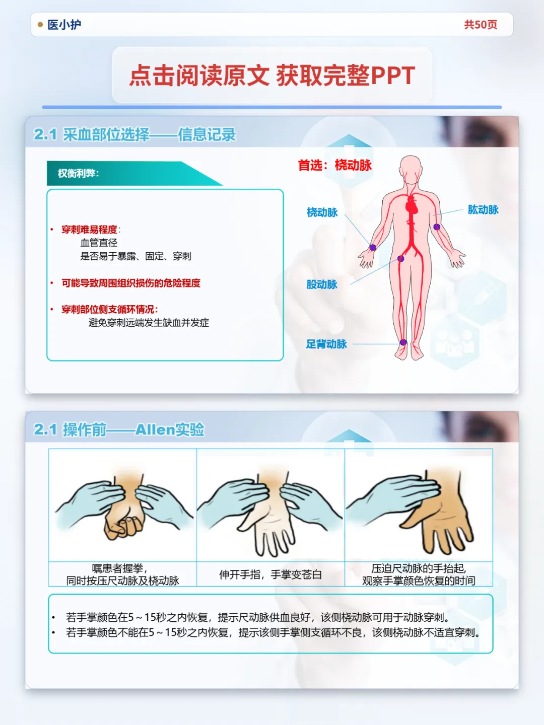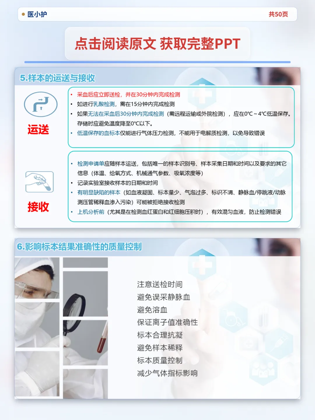 各位同事看过来,这份血气分析课件覆盖了从穿刺到判读的全流程。咱们护士不仅要会采血,更要懂结果背后的临床意义,避免误判延误抢救时机。