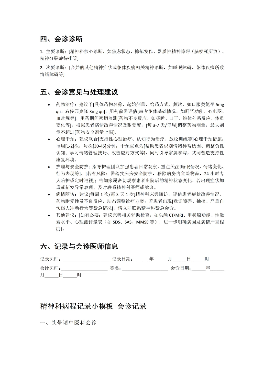 精神系列|44.精神科病程记录小模板-会诊记录