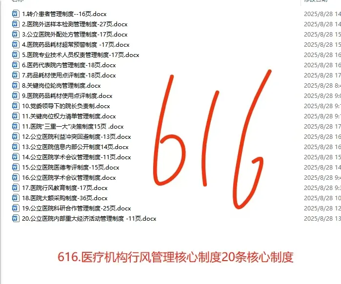 616.公立医疗机构行风管理20项核心制度
