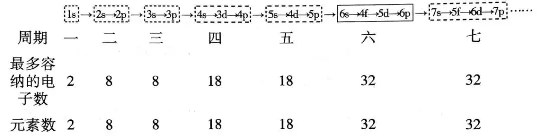 (1)各周期总是从ns能级开始、以np结束(第一周期除外,第一周期从1s1开始,以1s2结束),中间按照构造原理依次排满各能级。而从ns能级开始以np结束递增的核电荷数(或电子数)就等于每个周期里的元素数,具体数据如下:
