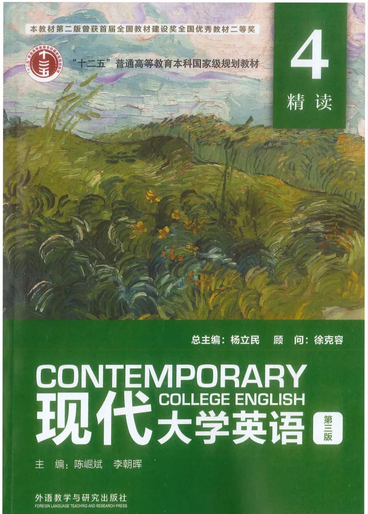 ●Lead-in每个单元的开始,最大的问题是如何启发学生,使其对新课文产生兴趣,让他们带着问题和期待迎接新单元的挑战,让他们迫切希望开卷阅读课文,同时帮助他们抓住课文的中心内容。为此我们设立了这个新板块,希望探索在短时间内达到这一目的的有效办法。●Text A接下来是主课文,课文后面是注释和词汇表。注释主要提供有关背景,但鼓励学生寻找相关材料。讲解词汇表的释义时,如果用简单英语讲解后学生理解上仍有困难,可以同时提供中英文的释义,再逐步过渡到完全用英语释义。鼓励学生使用各种工具书,包括电子工具书。●Language Focus要求学生尽量学会自己发掘并整理课文中各种体现英语特点的语言现象,比如构词法,各种短语、词组或搭配,一词多义,同义词与反义词,常用句型或语法项目等。此外,学生对课文中出现的活用词和有用的表达方法也要特别敏感。 Reading Comprehension要求学生在预习时仔细阅读几遍课文,鼓励听课文录音。通过这部分练习,检查学生是否掌握了课文的大意,是否解决了理解上的难点,是否真正读通、读懂了全文。这部分的主观问答题可配合教师课堂讲解使用,必须对课文内容和文字理解透彻,不留盲点。作者的意图,文章的要点、结构、逻辑、风格,对我们有什么启示,作者有无言外之意,读完课文有无一些联想,对文章有什么批评和评论。类似这些问题学生要准备在课上发表自己的意见。