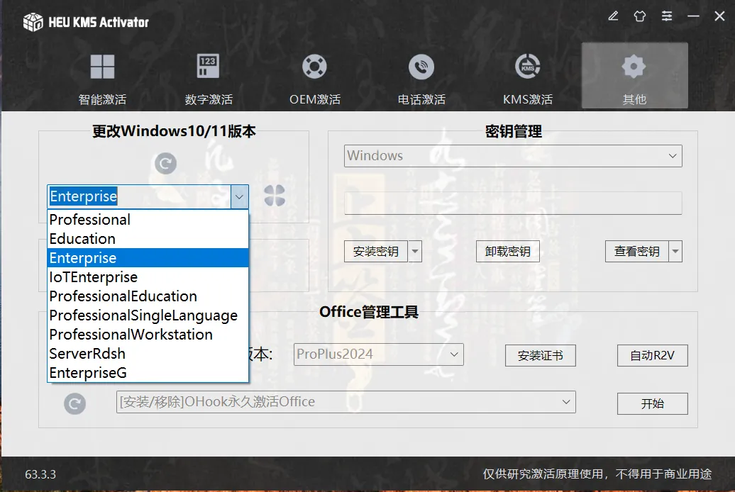 4. 电话激活(向信任的存储中写入电话激活的数据(伪造的假 数据),以达到类似于电话激活的目的,因此支持的Windows和Office 版本,必须支持电话激活);