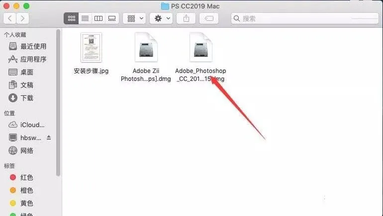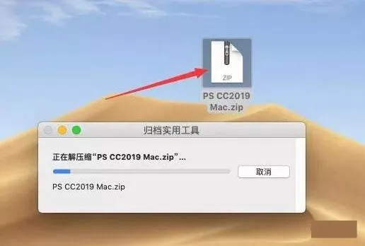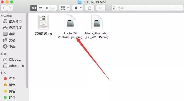 1.选择我们下载的PS安装包,双击自动解压(若解压不了,请用Unarchiver进行解压);注意此版PS不支持10.15及