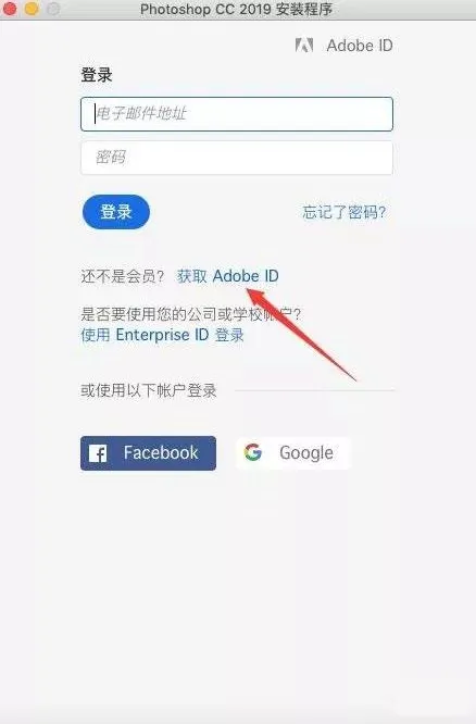 5.首次安装的时候我们需要注册一个账号,点击获取Adobe ID,已经有账号的用户可以直接登陆。