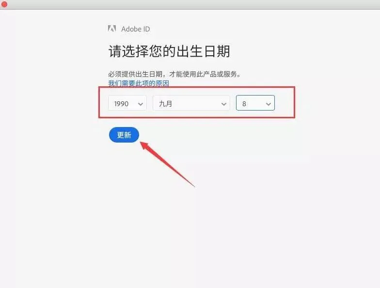 10.若有提示,下拉选择出生年月,点击更新。