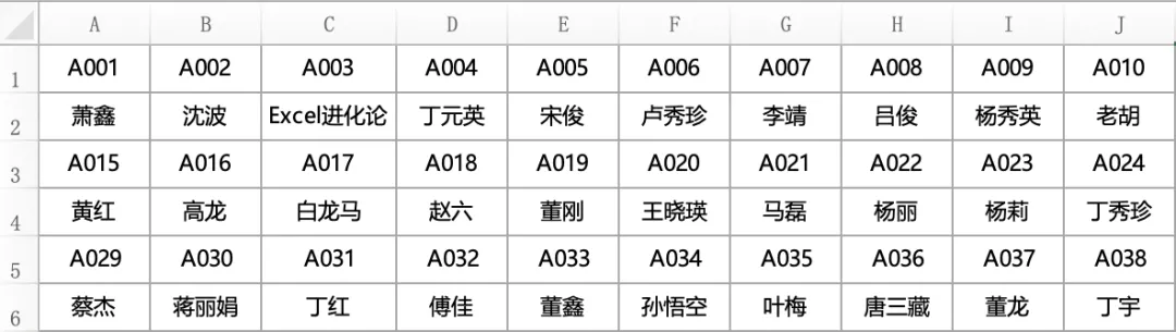 - TOCOL(A1:J5):横向扫描1-5行,生成一列所有工号