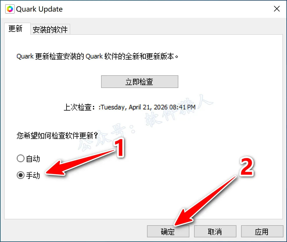 12.自动弹出下列对话框后勾选【手动】,点击【确定】(注意后期使用软件也切勿更新,否则会失效)。