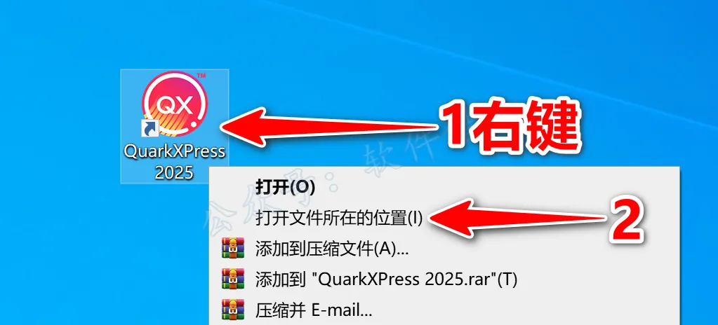 15.鼠标右击桌面【QuarkXPress2025】图标选择【打开文件所在的位置】。