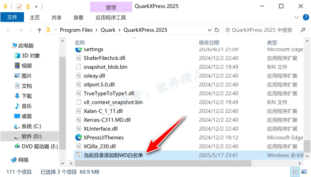 注意:此步操作是为了以后使用时就算开启【Windows Defender】也不会被误杀桌面上的软件启动方式,如果您还有其他杀毒软件,当提示桌面上的【QuarkXPress 2025】被判定有病毒时,请自行添加提示的文件为白名单。