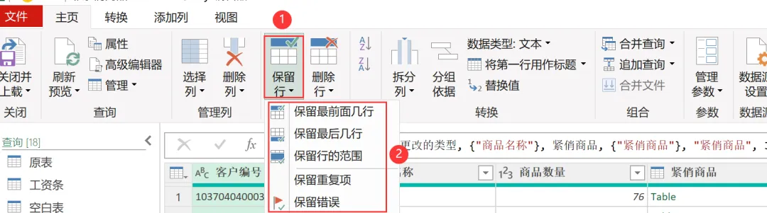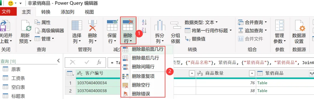 【删除列】使用的公式:= Table.RemoveColumns (源, {"日期", "订单号", "销售地区", "销售部门"})