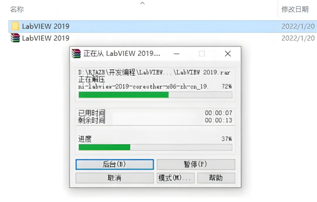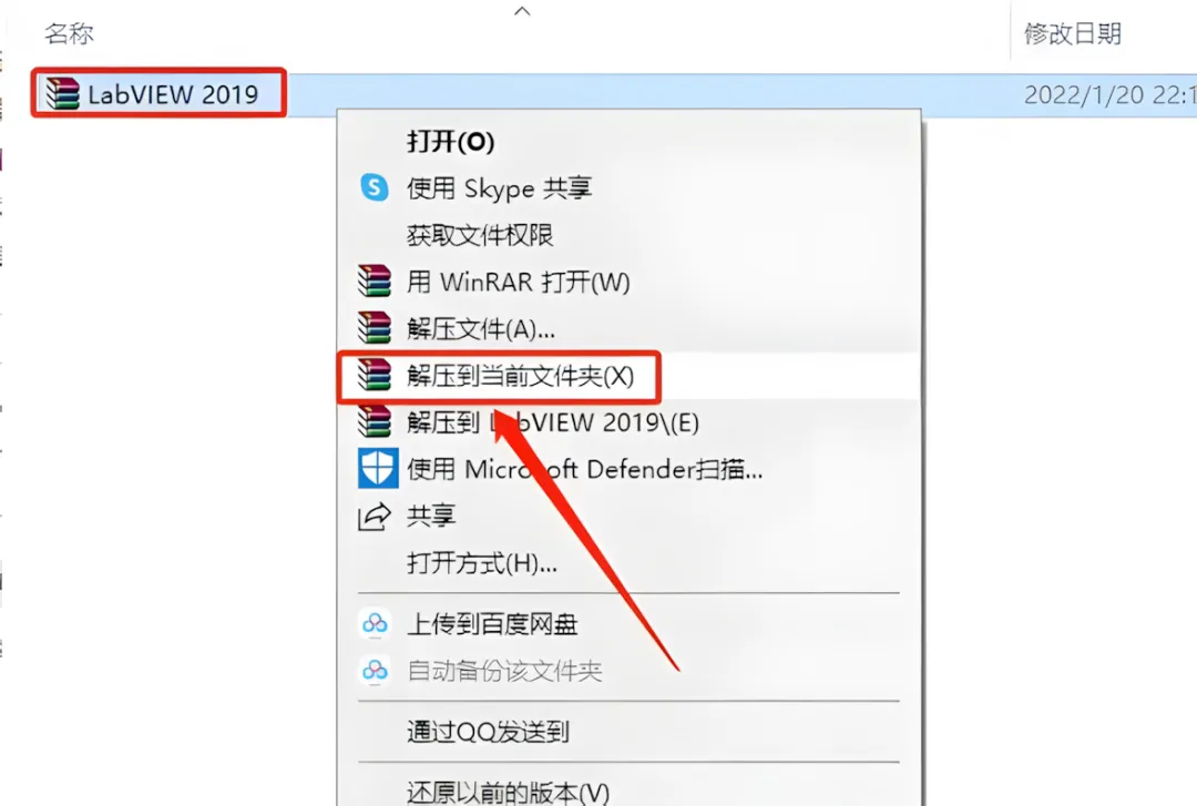 1、下载LabVIEW 2019软件安装包到电脑上,右键选择【解压到LabVIEW 2019\(E)】。