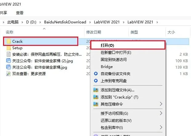 1、下载LabVIEW 2021软件安装包到电脑上,右键选择【解压到当前文件夹】。