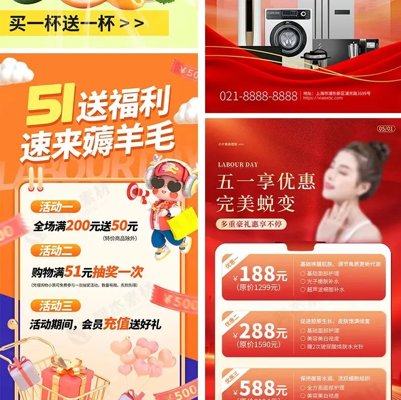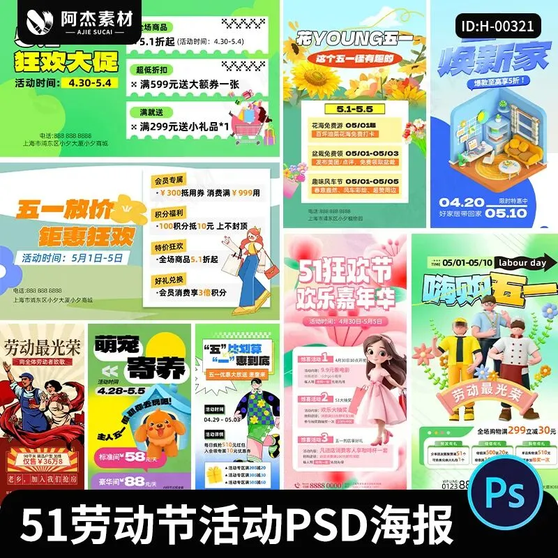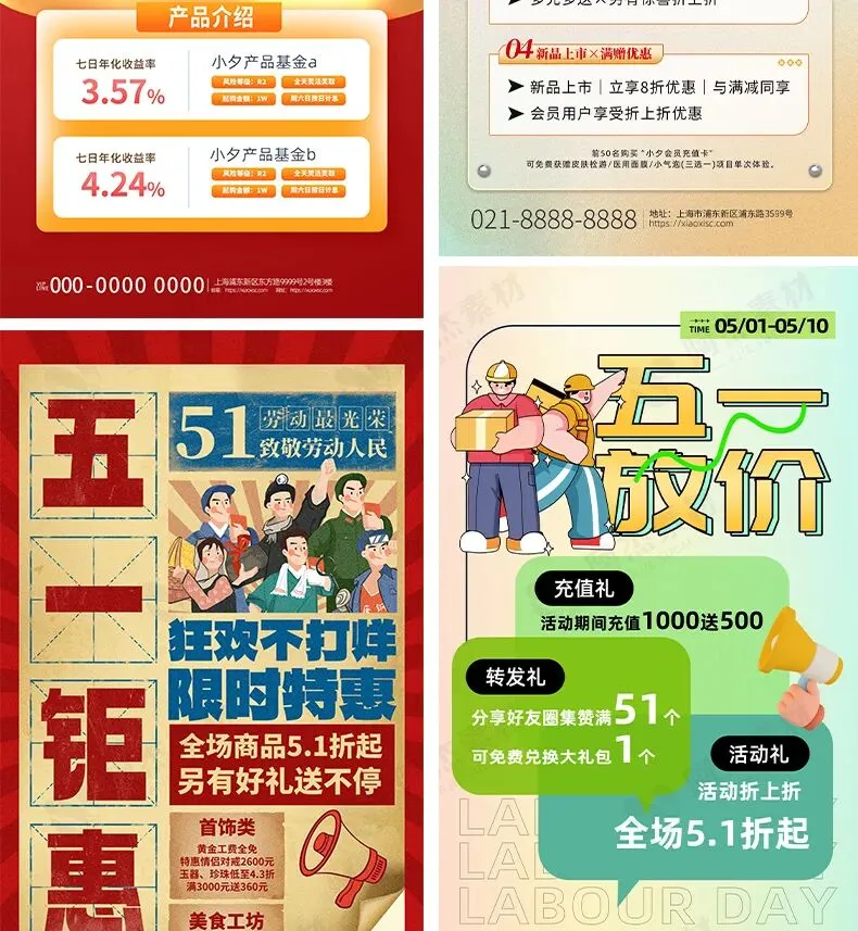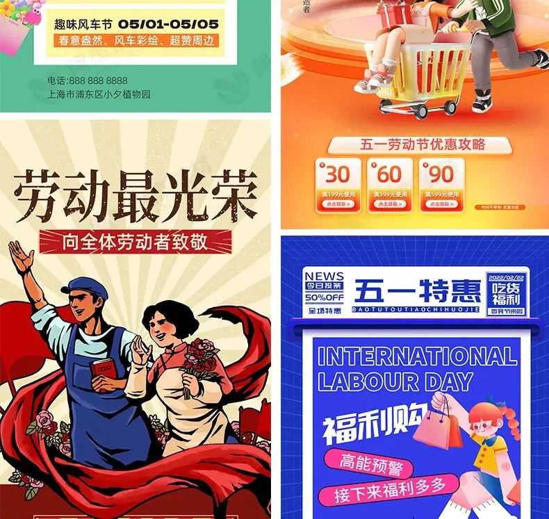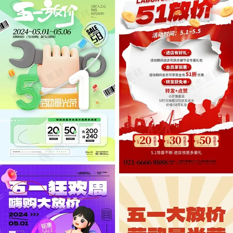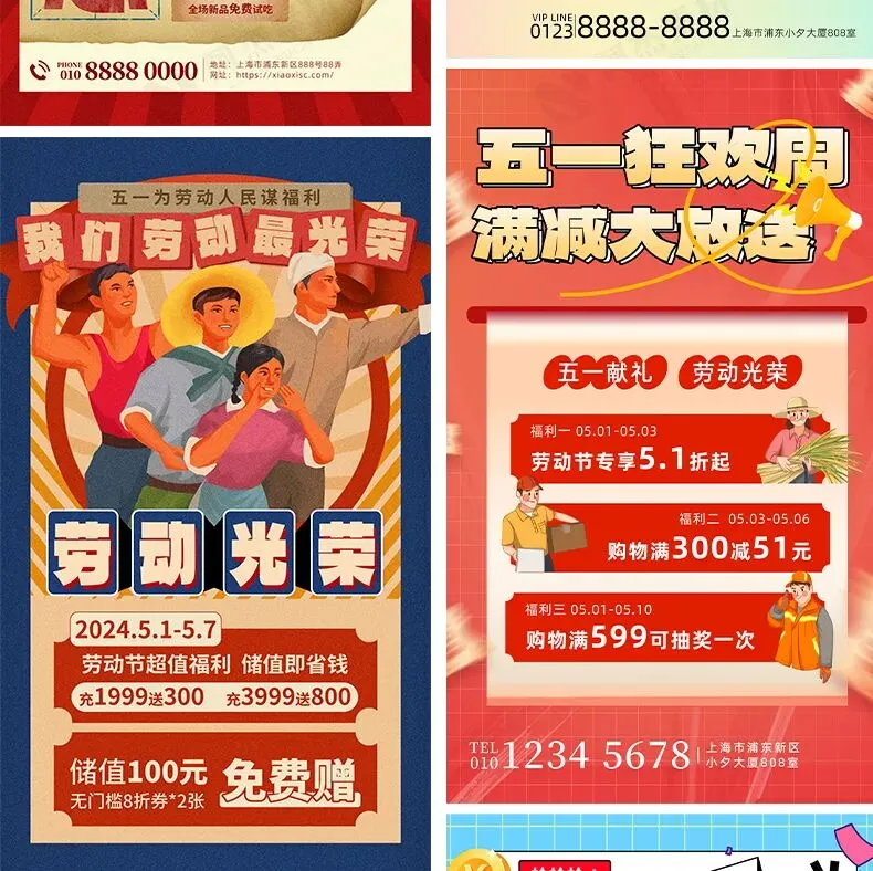 五一51劳动节活动大促宣传海报PSD模板今天给大家带来了五一51劳动节商场电商活动大促促销折扣宣传海报模板PSD设计素材格式:PSD格式|JPG预览图无套路 不要会员 免费下载!链接见文章末 素材展示资源获取方式▼*公众号回复:H-00321*公众号回复:H-00321*公众号回复:H-00321