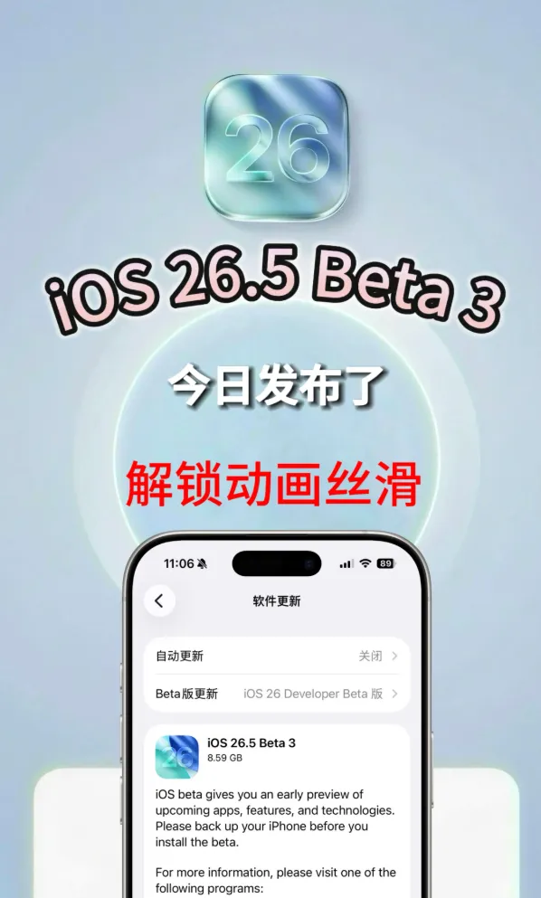 已经升级到 iOS 26.5 Beta 3 的朋友,把手里的体验讲讲,帧率、手感、耗电这些点,评论区放出来,给还在观望的人一个参考。