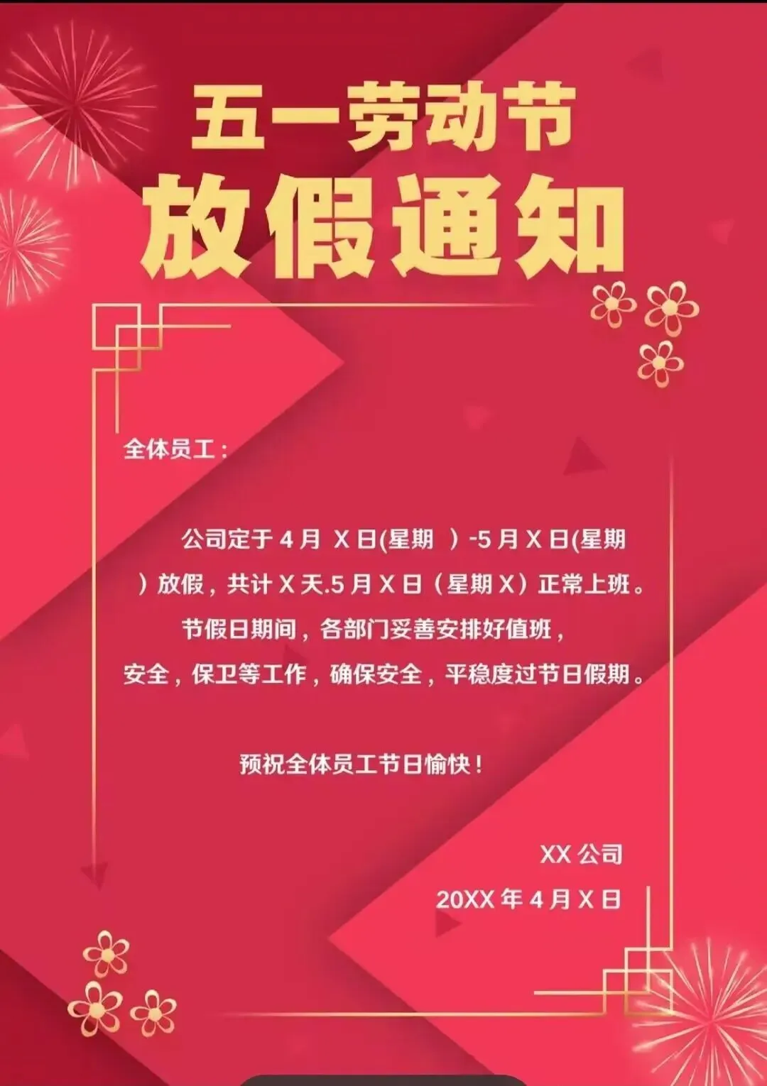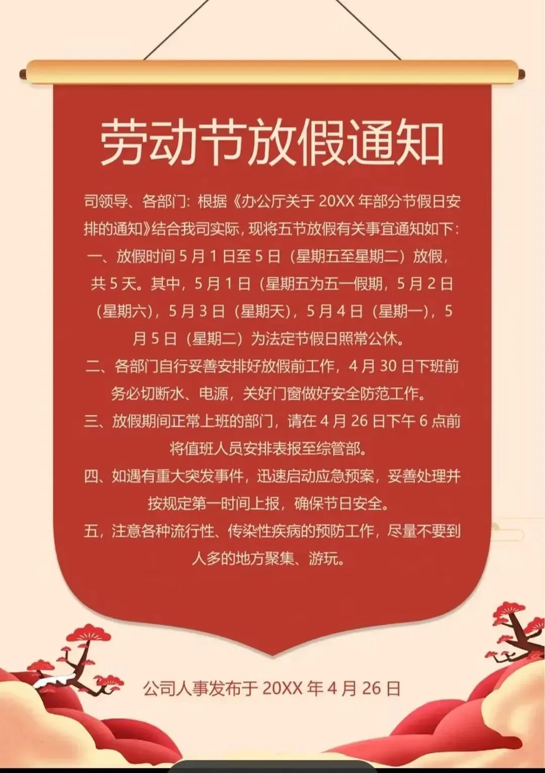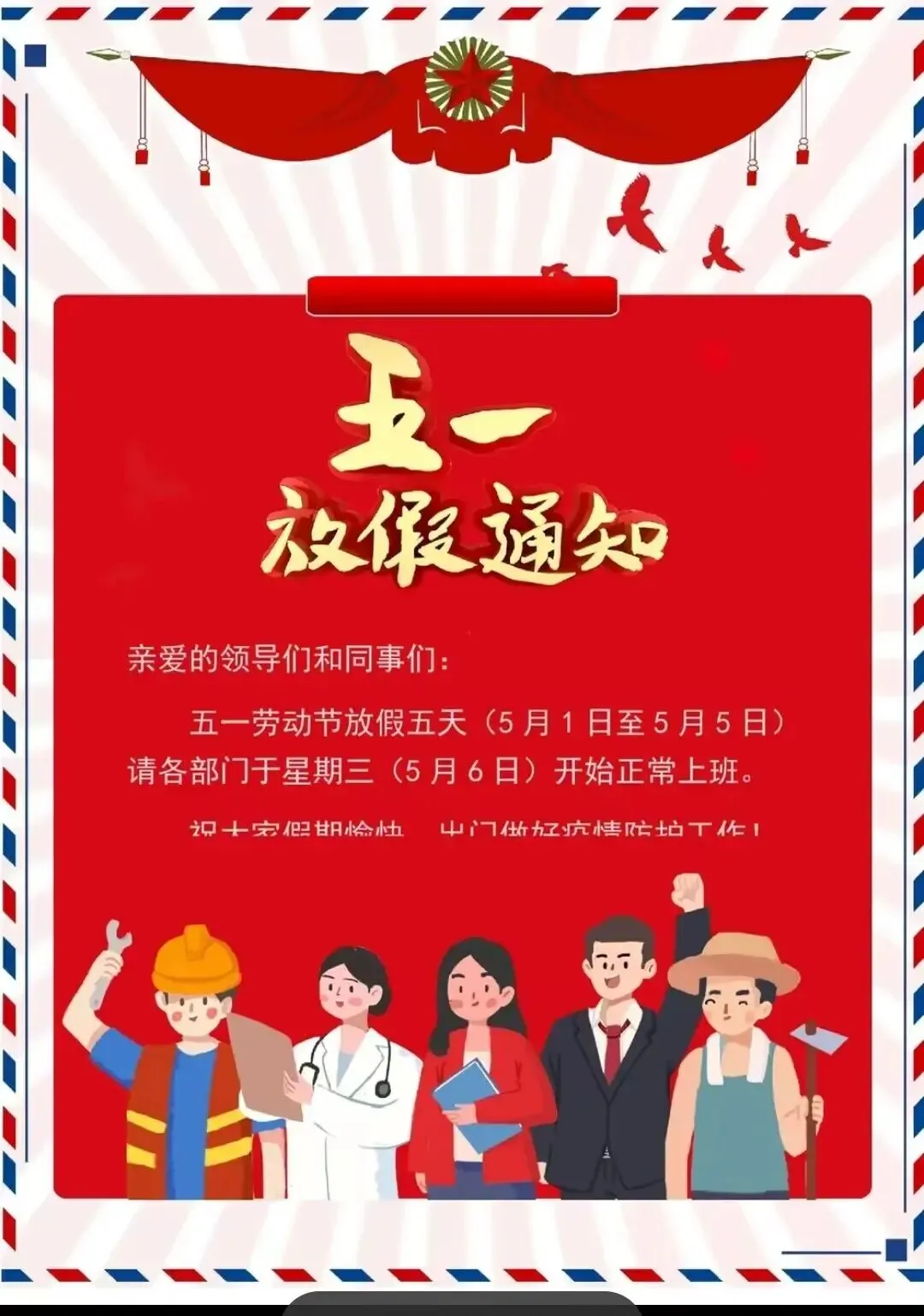 ✅ 企业行政:发布五一放假安排、客户温馨提醒