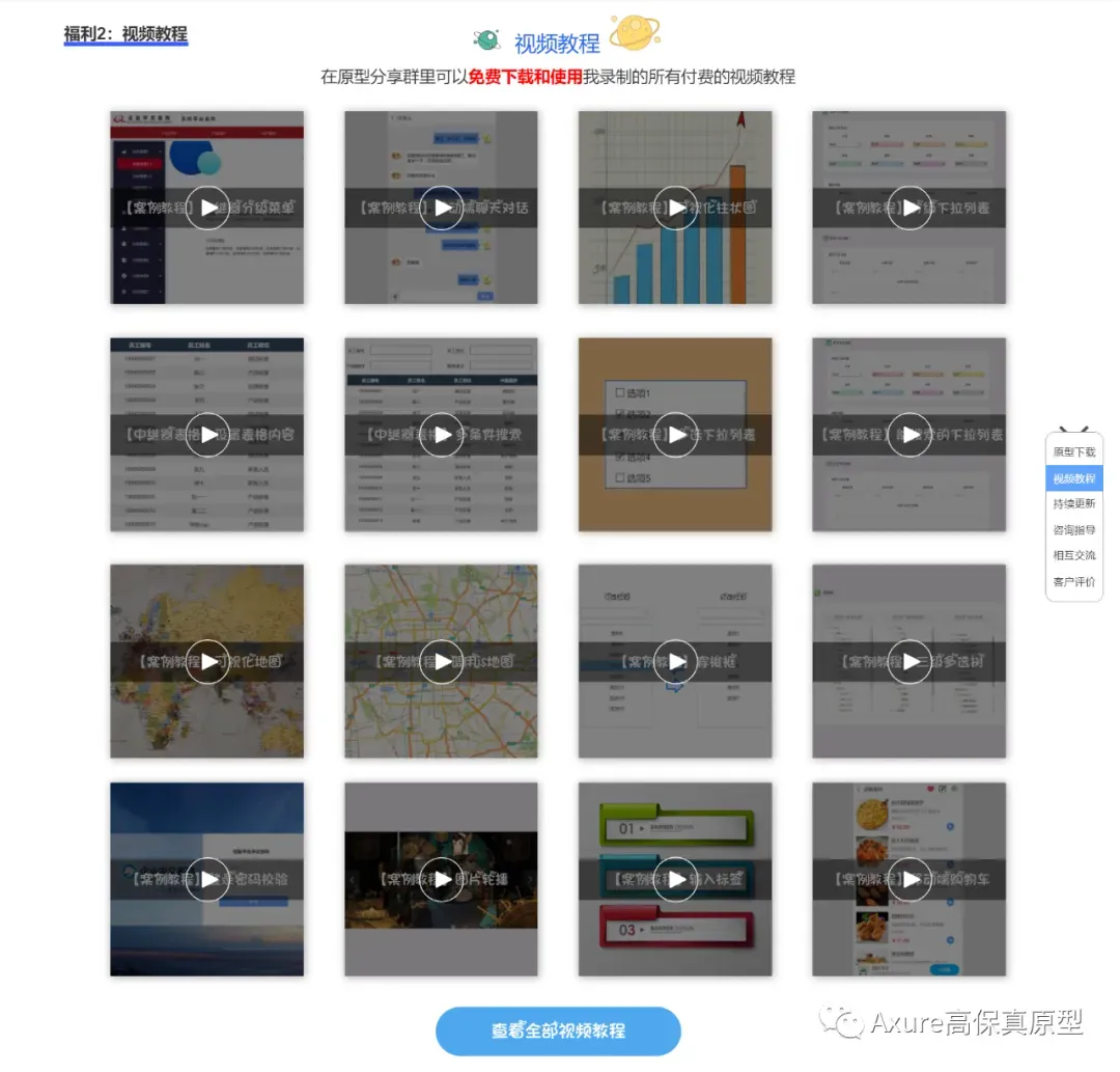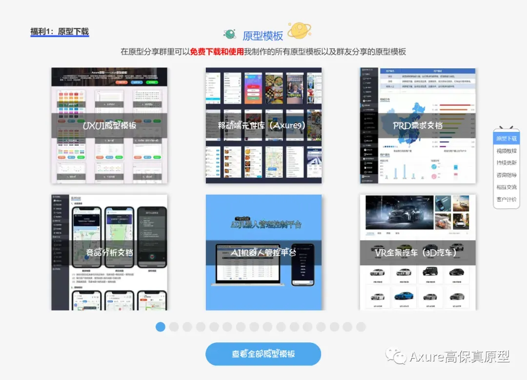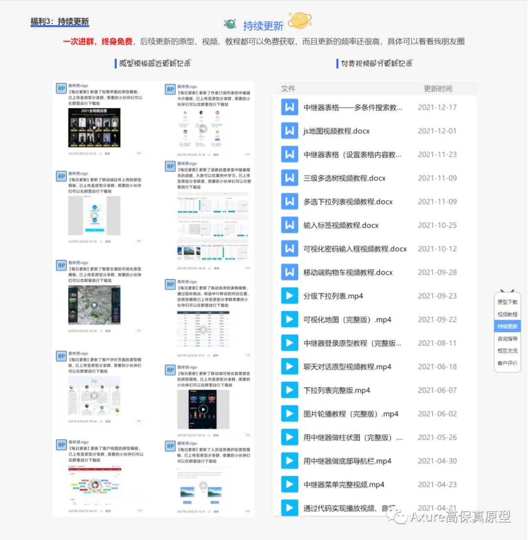 一次进群,终身免费,后续更新的原型、视频、教程都可以免费获取,而且更新的频率还很高,具体可以看看我朋友圈