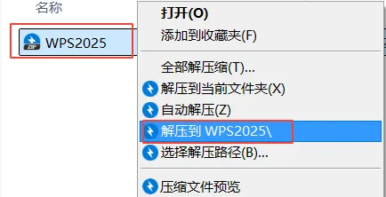 1.把资源从网盘下载到电脑上面,右键压缩包选择【解压到WPS2025】。