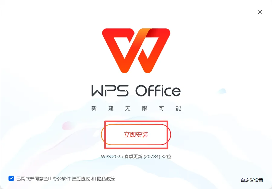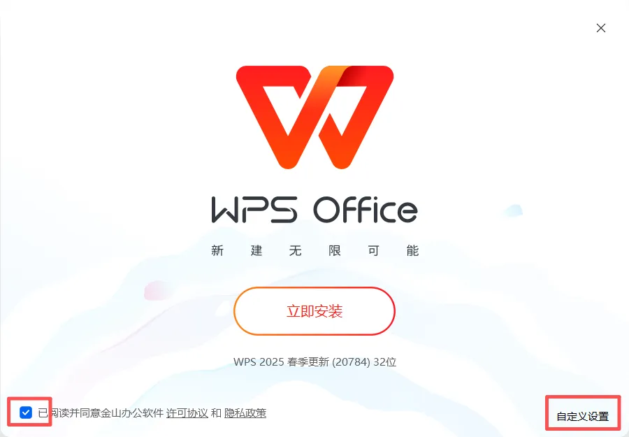 3.勾选【已阅读并同意……】,点击【自定义设置】。