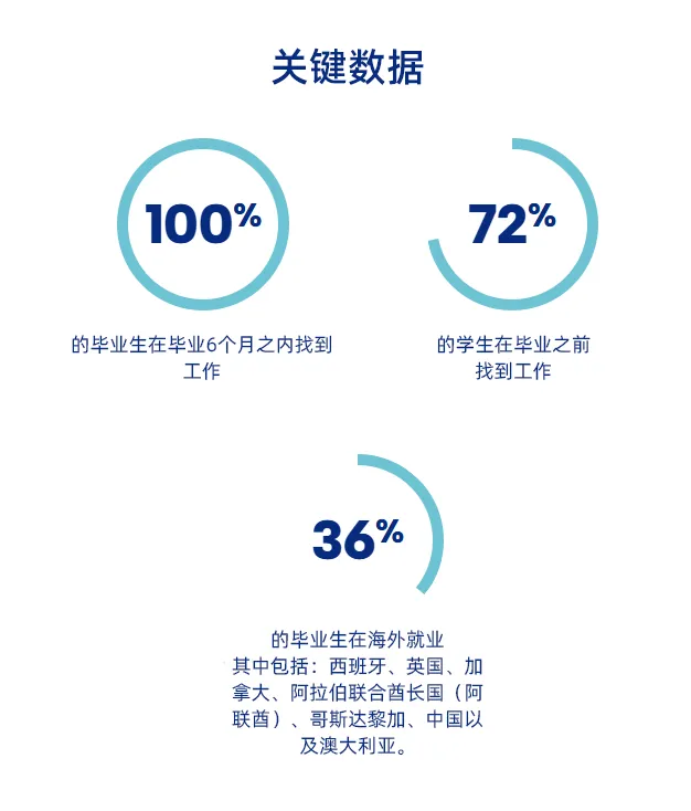 本项目为学生们提供了为期1年的学术外派,而选择了国际方向的学生将额外获得为期6个月的外派机会。
