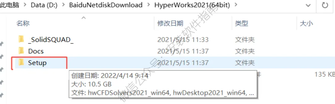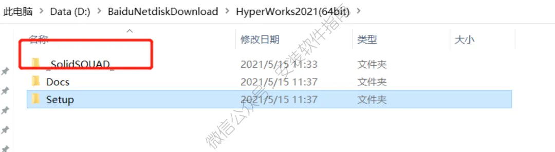 16..打开安装包解压后的【HyperWorks2021(64bit)】文件夹,双击打开【_SolidSQUAD_】文件夹