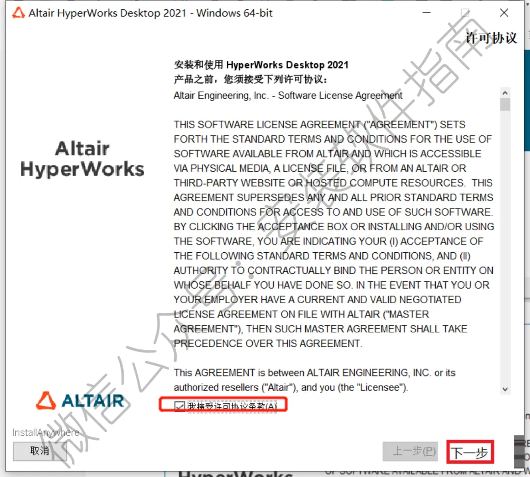 5、勾选我接受许可协议条款,然后点下一步
