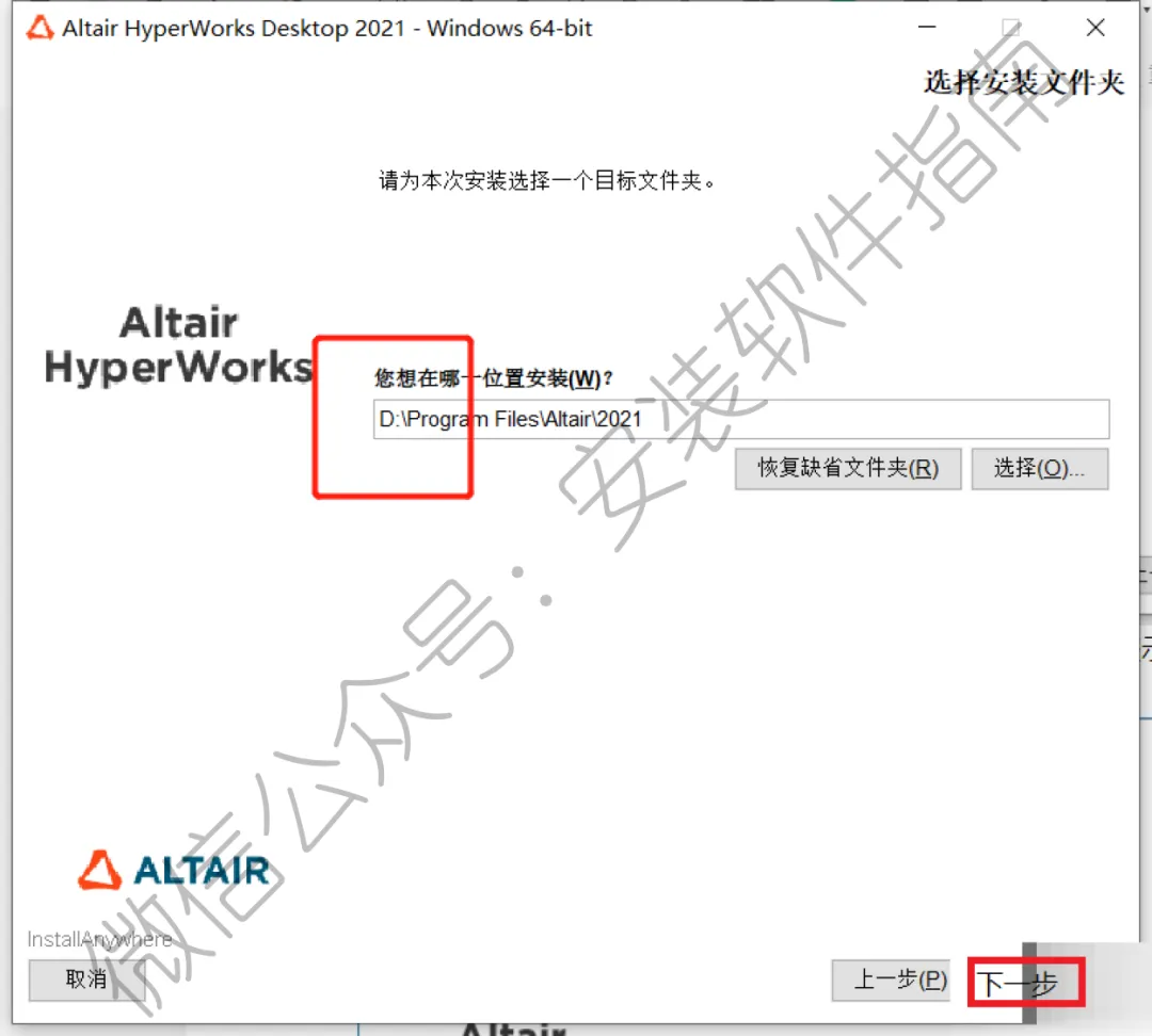 8.点击【选择】可更改安装位置(建议不要安装在C盘,可以在D盘或其它磁盘下新建一个“HW”文件夹。注:安装路径中不能有中文),点击【下一步】