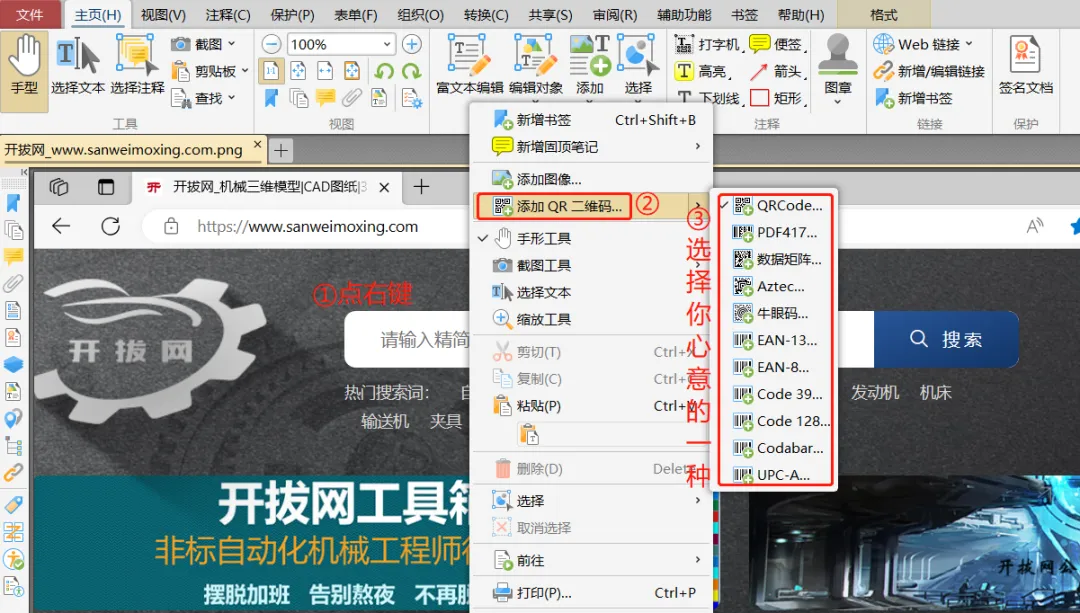 3.1、在打开的文件内,右键-添加QR二维码-选择其中一种格式