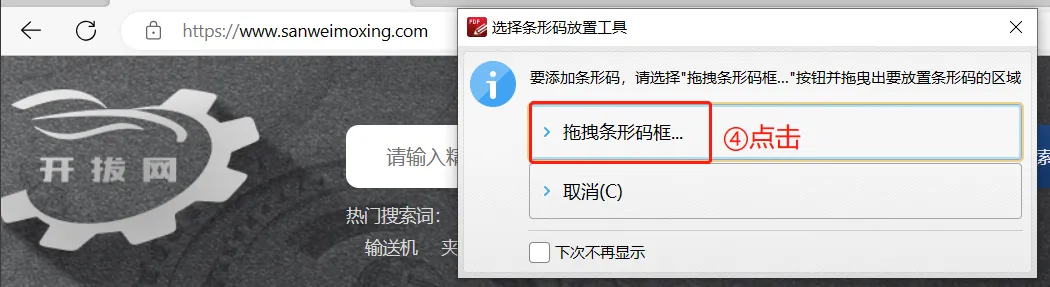 3.2、点击“拖拽条形码框...”