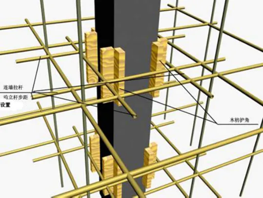 (6)、墙阴阳角加固要求:第一道螺杆距离墙阴阳角为200mm。