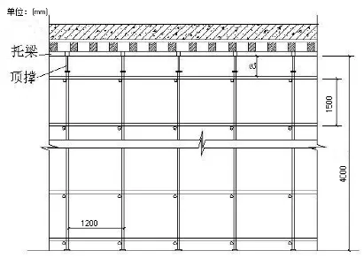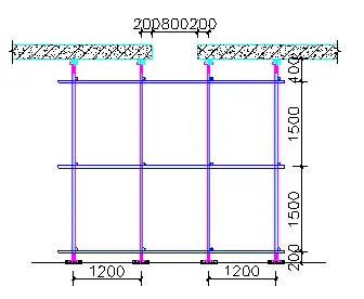 横杆长度以300mm为模数,根据要求选用600mm,900mm,1200mm三种。板底主次龙骨根据计算布置。