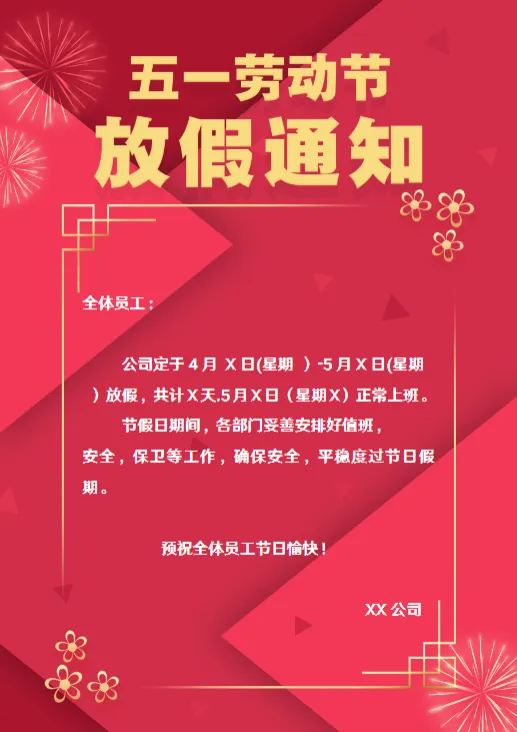 - 标题:明确标注 “XX 单位 2026 年五一劳动节放假通知”,避免模糊表述;