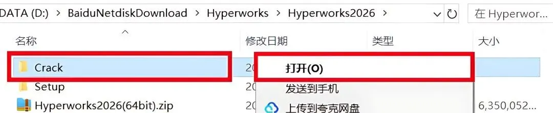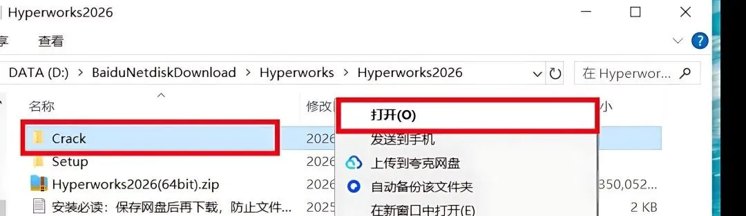 1.下载HyperWorks2026软件安装包到电脑上,右键选择【解压到当前文件夹】。