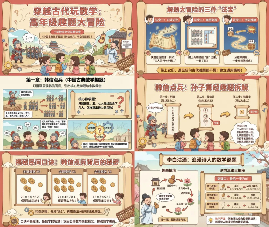 穿越古代玩数学:高年级趣题大冒险PPT模板