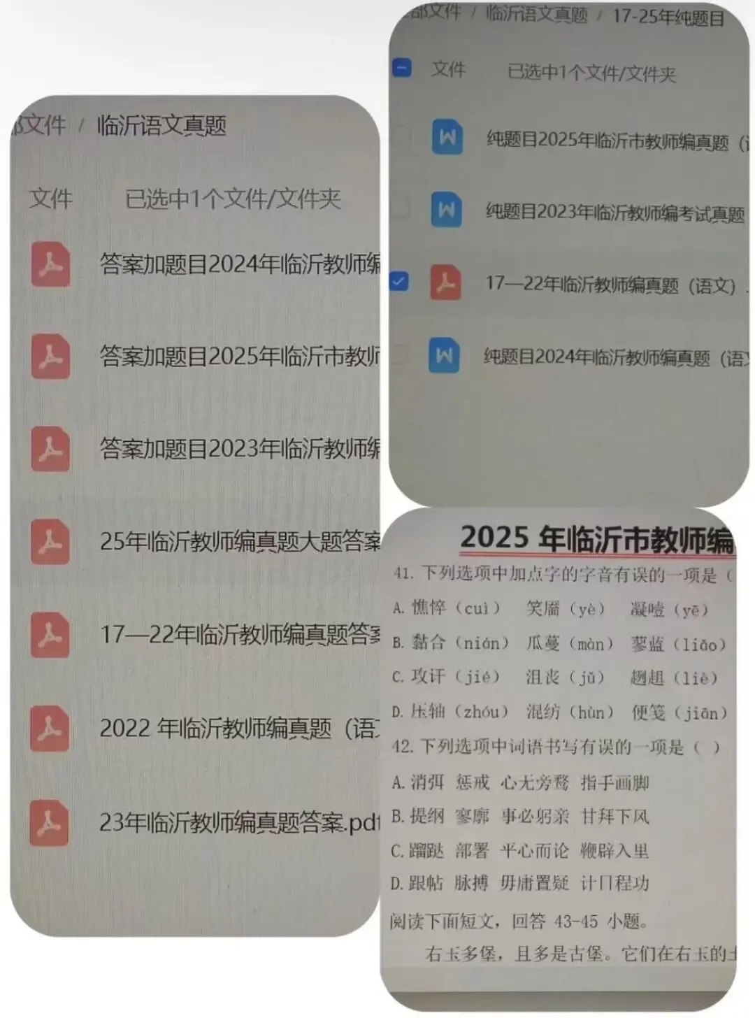 4.25山东临沂教招,语文真题PDF版(17-25)