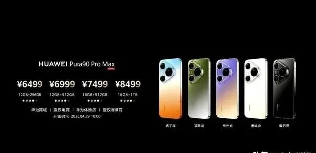 华为Pura90系列手机正式亮相,标准版4699元起,Pro版5499元起,Max版6499元起,余承东:新定价压力较大,后期可能涨价!华为Pura 90系列发布,余承东坦言定价压力巨大,低价窗口随时关闭图片:真机全家福外观4月20日,华为在春季新品发布会上正式亮相Pura 90系列。有人说华为这波叫三杯回归,也有人对售价存疑,更有人担心抢不到原价。标准版4699元起,Pro版5499元起,Max版6499元起,余承东现场直言定价压力很大,后续可能涨价,现在的价格“真的非常努力了”。本次亮相的Pura 90系列共三款,覆盖12GB+256GB到16GB+1TB多种组合。4月29日上市,拉平上代定价。尤其Pro Max比上代还便宜500元,性价比突然高出一截。没有饥饿营销,也没有盲盒抽签,更没有虚标秒杀:能不能原价买到,成了今年数码圈最大悬念。设计全方位进化。全系直屏告别曲面误触,标准版竖琴Deco与弦纹背板极简风,Pro配色取自假日特调灵感,Max版山川湖海渐变金属中框,“图片:Pura 90 Max配色展示”。Pro Max首发抗反光耐刮昆仑玻璃,反光比例下降70%,耐刮性提升16倍,整机日常手感更顺滑。全新中框与鹅卵石无断点一体曲线,兼顾防护与美感。再看性能配置,Pura 90 Pro和Max搭载麒麟9030S芯片,AI算法算力提升,日常流畅度与信号体验同步优化。标准版依然是麒麟9010S,兼容鸿蒙6.1系统。存储方面,16GB内存+1TB闪存最大组合,面向重度用户。电池全系高于5000mAh,Max版达到6500mAh,标配100W快充+50W无线,充电“养电”并举,续航焦虑直接打住。影像是这次华为主打方向。Pura 90 Pro Max用上2亿像素RYYB感光大底,首发Triplet Power Prism三合一超聚光棱镜,首发芯片级2亿RAW域实时处理,长焦端解析力无短板。支持远距人声增强,现场演示10米外清晰收音,对比友商同价机型,是目前旗舰里长焦体验最突出的方案之一。Pro与Max的AI姿势推荐、3D动态照片、红枫原色摄像头,也让日常人像和旅行大片拍摄更轻松。HarmonyOS 6.1带来全局沉浸UI、文件加密分享等多项升级,5500万鸿蒙终端已就位,生态协同优势日渐明显。“图片:鸿蒙生态操作界面”。此外5A通信并不标榜为新一代5G,而是综合体验升级,包括弱信号、地库、电梯、山区等场景的联网能力,实测速度有明显优势。网友关心的“5A和5G谁快”问题,实际落地感知比参数更重要,追求高速和稳定的用户可关注。具体来看,Pura 90系列价格全公开:标准版12+256GB为4699元,12+512GB版5199元,16+512GB 5699元;Pro版12+256GB 5499元,16+1TB顶配7499元;Max版入门即12+256GB 6499元起,顶配16+1TB 8499元。乍一看比友商高,但影像、通信、系统生态全都少一环都不是完整旗舰。没有低配高价,也没有为降价故意减配,华为这波是把供应链优势直接体现在成品上。有人质疑是不是集采备货所致,有人拿友商溢价作参考,放到行业竞速下半场,华为Pura 90系列用全链路自主可控把握了产品主动权。核心用户追求体验一致性和影像突破,普通用户关注长续航和信号,Pura 90系列可以说全都覆盖到了。对于追求极致影像、对价位敏感,同时又看重系统生态和软硬件体验的用户,建议尽早入手,毕竟已经有涨价预期,错过首发窗口机会成本就上来了。2026年高端旗舰的分水岭很清楚:谁能扛住供应链压力、用实力做定价,谁就能在下行周期稳住身位。Pura 90系列不是在讲情怀,而是用技术和体验回击行业价格战。至于未来还能否见到这个价位,谁也不敢打包票。回归本质,高端旗舰走向用户,是靠真本事和稳定产业链撑起来的。