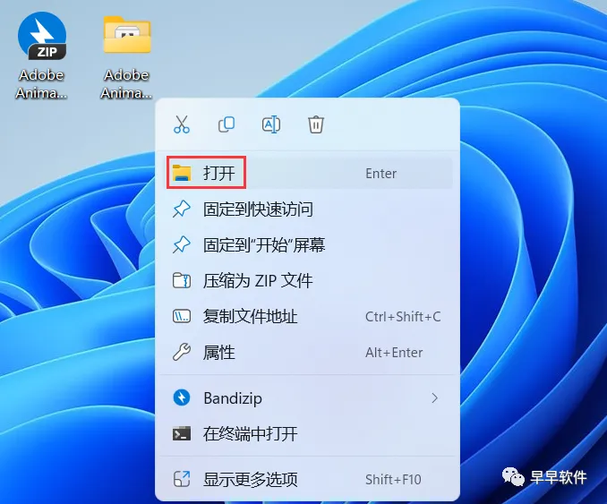 7、回到桌面,右键桌面上的【Adobe Animate 2023软件图标】,点击【打开】