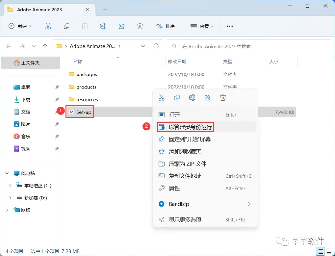 1、下载Adobe Animate 2023软件安装包到电脑上,右键选择【解压到Adobe Animate 2023\】