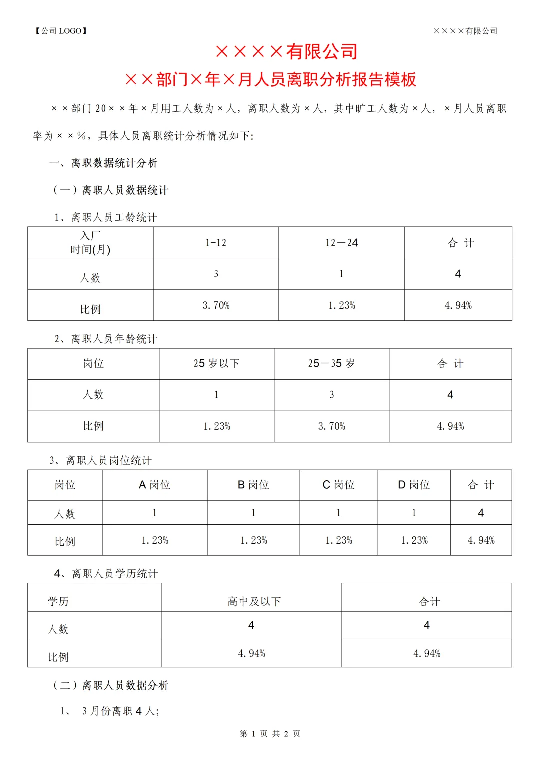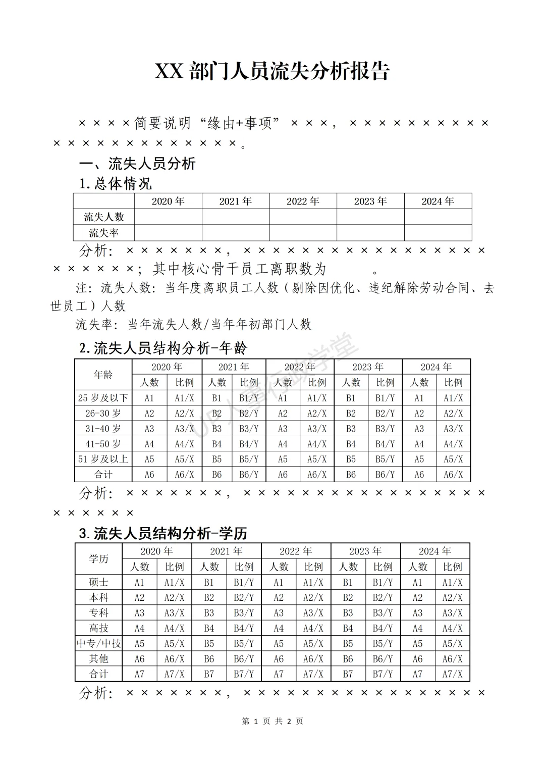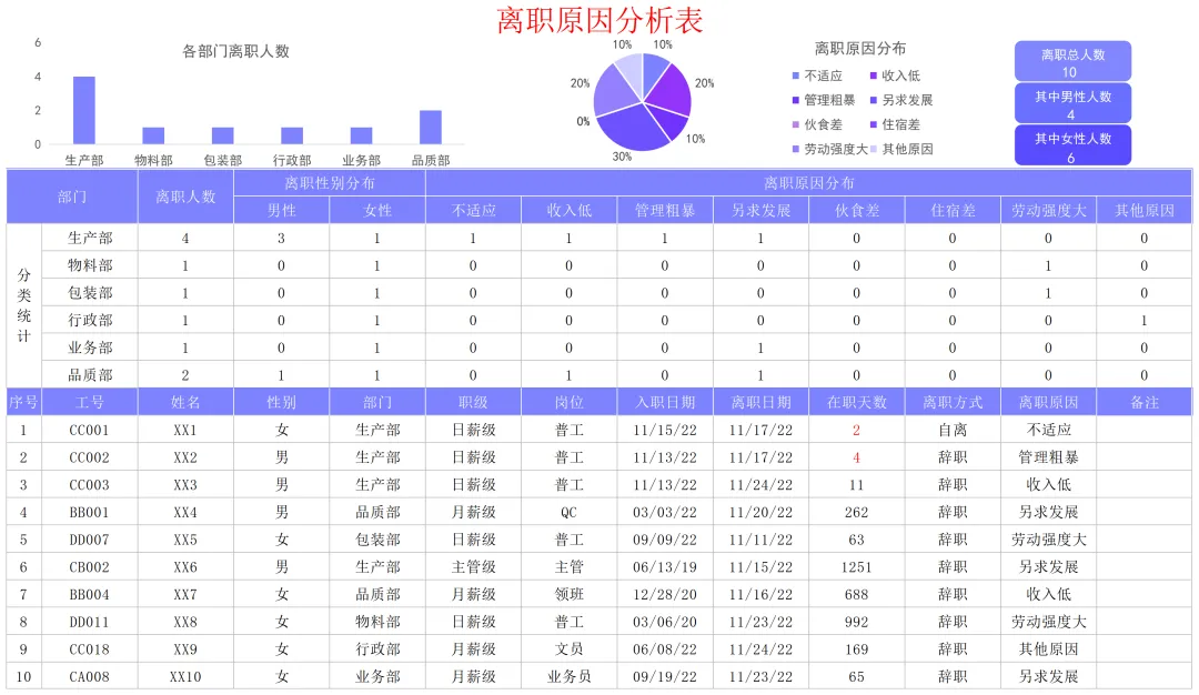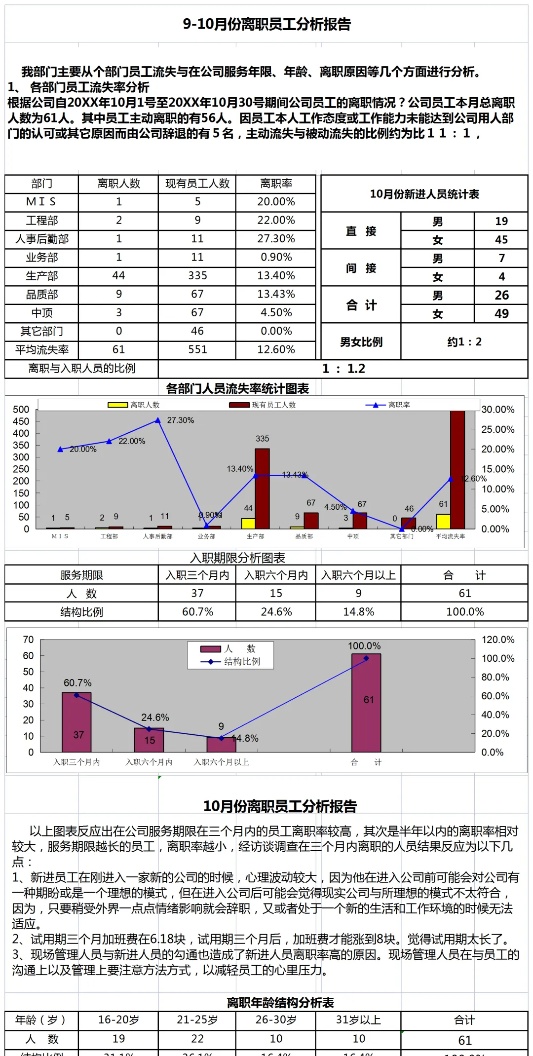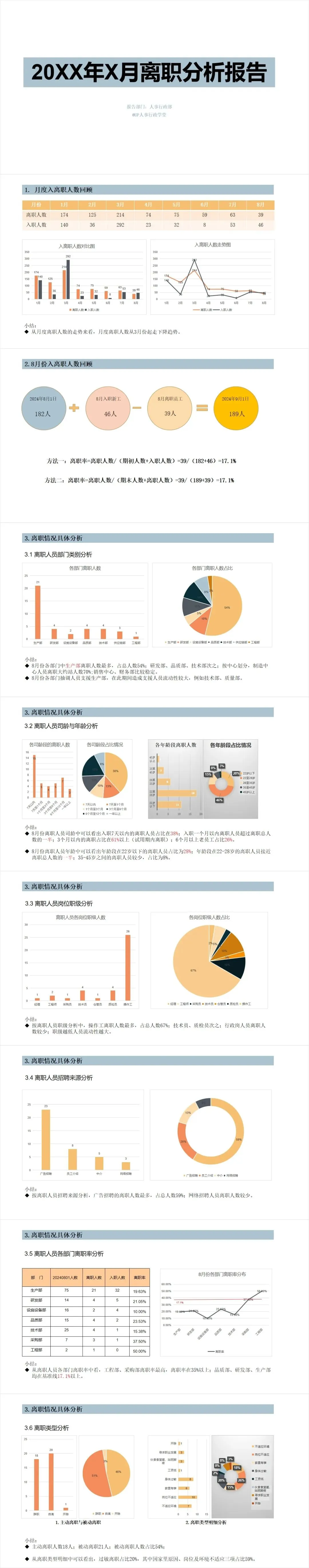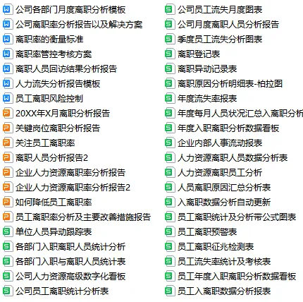 《人才流失分析》资料包内含各部门月度离职细模板、离职人员回访结果分析报告、离职率管控考核方案、入职于离职人员统计分析报表等,共计40份文件。