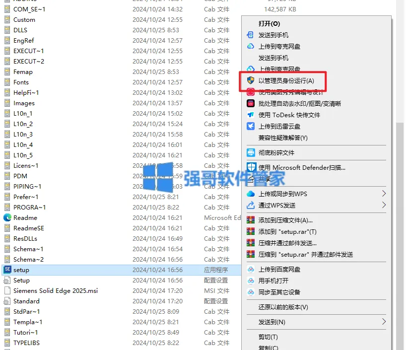 2.打开【Setup】文件夹,选中【Setup】选择【以管理员身份运行】