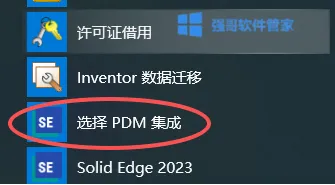 17.在开始菜单打开“选择PDM集成”