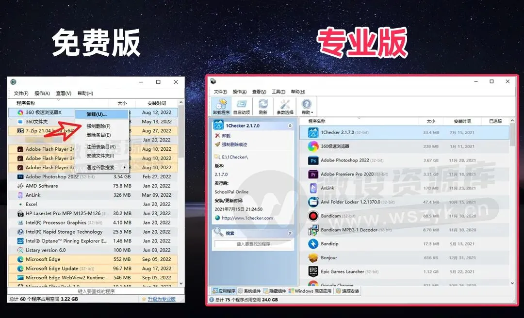 专业版拥有全新的界面设计,在具备免费版所有基础功能外,还具有安装追踪,批量强制删除、自启动管理等功能,清理更加彻底!这一点比免费版强许多