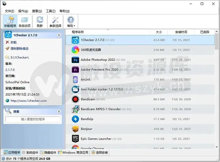 1、这是一款非常小巧的软件,无需安装,下载后直接打开使用,打开后可以很清晰的看到系统已安装的软件,占用内存,安装时间等等信息。
