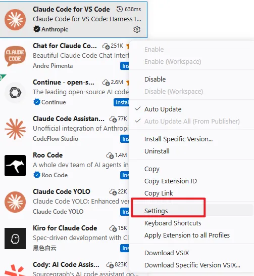 这里笔者补充说明一点,为了方便编码和Claude交互体验,笔者推荐完成该插件安装后,将其位置设置在sidebar。对应配置需要通过插件设置面板完成,笔者推荐通过插件设置按钮入口点击settings快速进入配置界面: