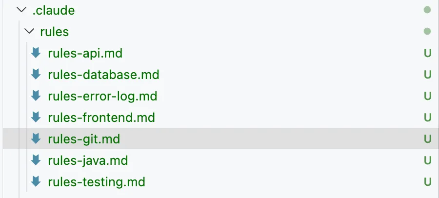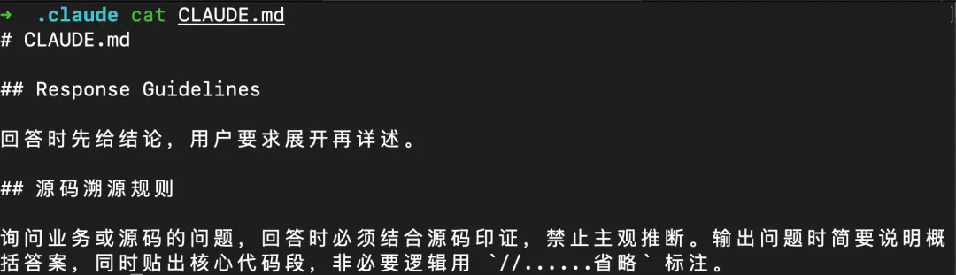 于是我们就有了一份约束AI编码规范的rules清单,这里需要注意一下笔者的处理细节,因为rules是笔者让AI结合代码上下文信息推理出来的规则文档,更多是处于对于个人AI编程的约束。为方便后续个人编码规范一些特殊化定制和灵活迭代,笔者将其存到**.claude**这个项目级目录下,将影响面压缩至个人: